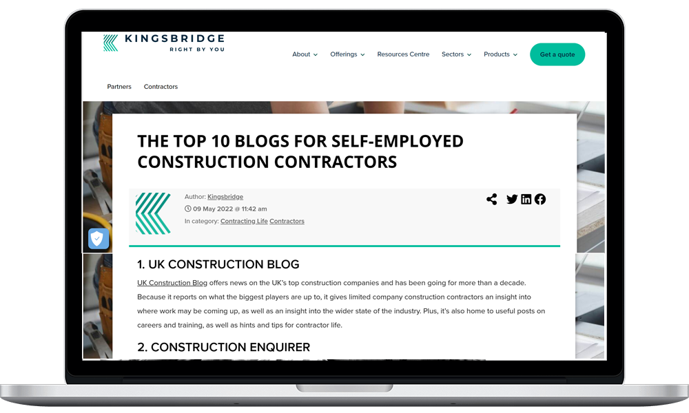 Kingsbridge who are specialists in insurance advice produced their guide on the Top 10 Blogs for Self-Employed Construction Contractors, and listed the UK Construction Blog as their first pick: