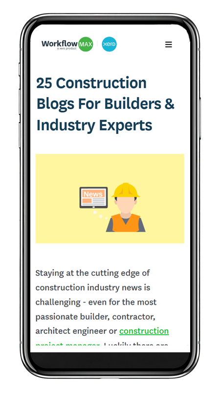 Workflow MAX - a product of Xero accountancy software listed the UK Construction Blog in their guide to the top 25 expert blogs for the construction industry: